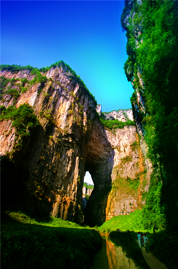 1、規模最大、最高的串珠式天生橋群—天生三橋。所謂“山是一座橋,橋是一座山”,橋連坑,坑接橋,洞生洞,二山生三橋,三橋連兩坑,氣勢磅礴,景象萬千。
