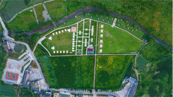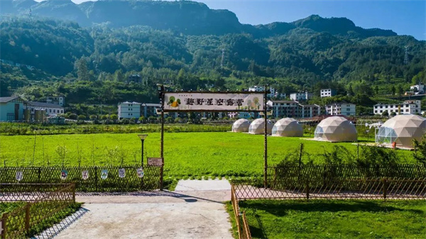 犀牛寨河谷部落露營基地周圍綠意盎然,空氣清新,景色宜人,營地坐落在峽谷茂林之中,有清河碧波順流而過,為游客提供了一個清幽、寧靜的露營環境。