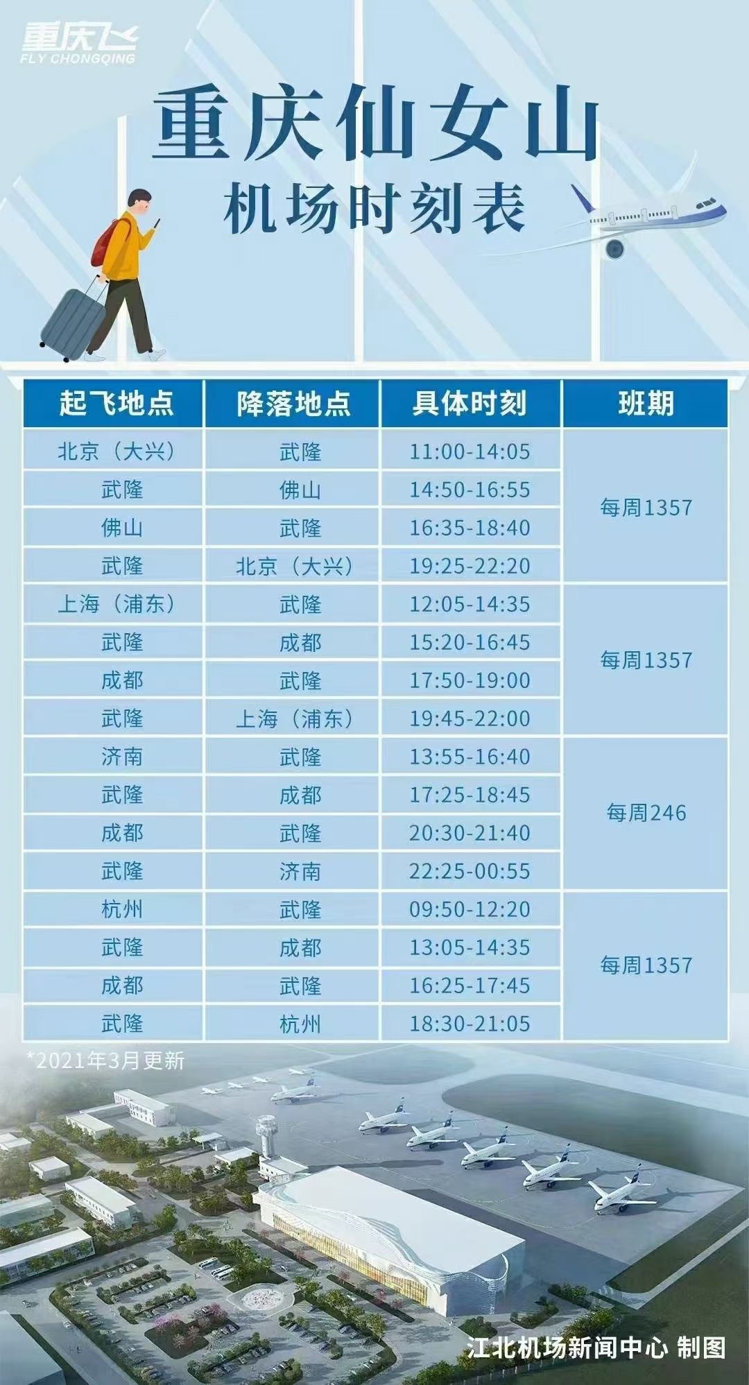 圖:重慶仙女山機場航班時刻表