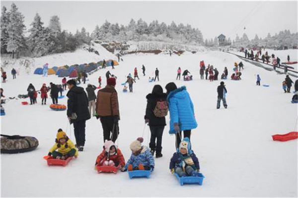 仙女山擁有西南地區最大的高山滑雪場,面積達5萬平方米,可同時容納超3000人滑雪,雪場設有滑雪橇、雪上飛碟、滑雪船等不同滑雪項目,可滿足不同喜好和不同年齡段的游客需求。