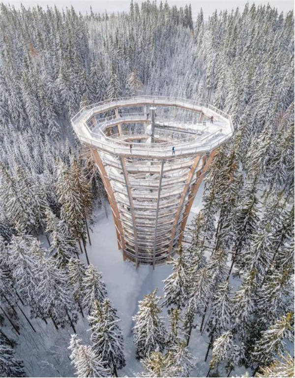 相比往年,今年仙女山還多了網紅溜娃目的地——樹頂漫步。仙女山樹頂漫步是一個集自然教育、營地教育生態科普、森林運動、戶外拓展文化表演、度假為一體的綜合性互動體驗式教育基地,有著森林之眼、空中棧道、無動力游樂場、云端旋降、高空攀樹、速降等游玩設備。特別是冬季走在高空棧道和森林之眼,仿佛行走在森林之上;看著觸手可及的樹頂和一望無際的遠方,仿若將世界納入了胸懷。