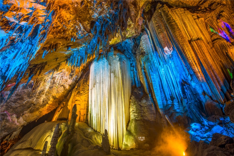 芙蓉洞是國家5A級景區、國家重點風景名勝區、國家地質公園、世界自然遺產地,與美國的“猛犸洞”,法國的“克拉姆斯洞”并稱為世界三大洞穴,洞內奇幻瑰麗,石筍石幔千姿百態,被譽為“地下藝術宮殿”。