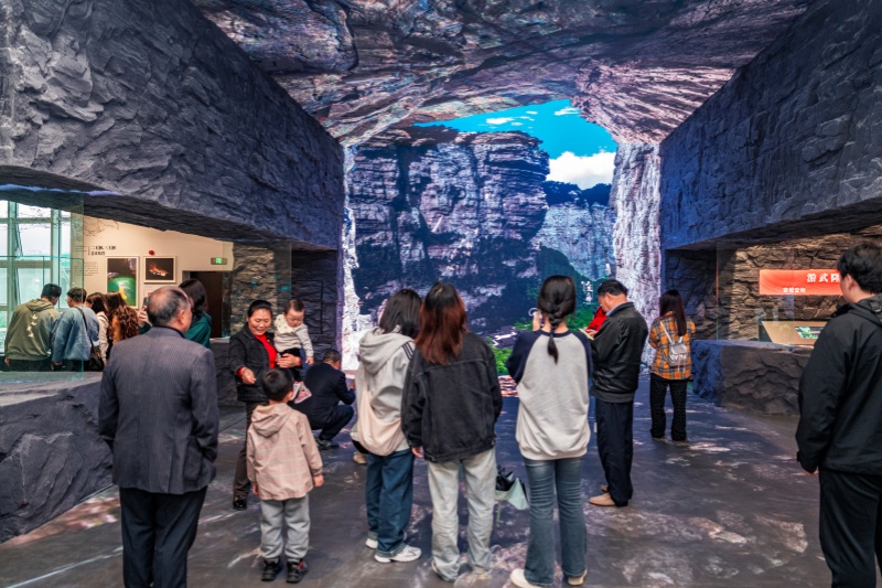 武隆喀斯特博物館,是一座集科普教育、文化展示、生態旅游于一體的綜合性博物館,展示空間5800平米。該博物館的整體風格采用了現代與傳統相結合的設計方法,通過飛翔影院、5D影院以及VR等體驗性項目表現武隆喀斯特地質地貌獨特的韻味和武隆豐富的歷史文化。博物館分為三層,共設有五個展廳,分別是“千巖千面”“溶巖與水的邂逅”“洞穴探秘”“生靈共舞”和“化境武隆”。