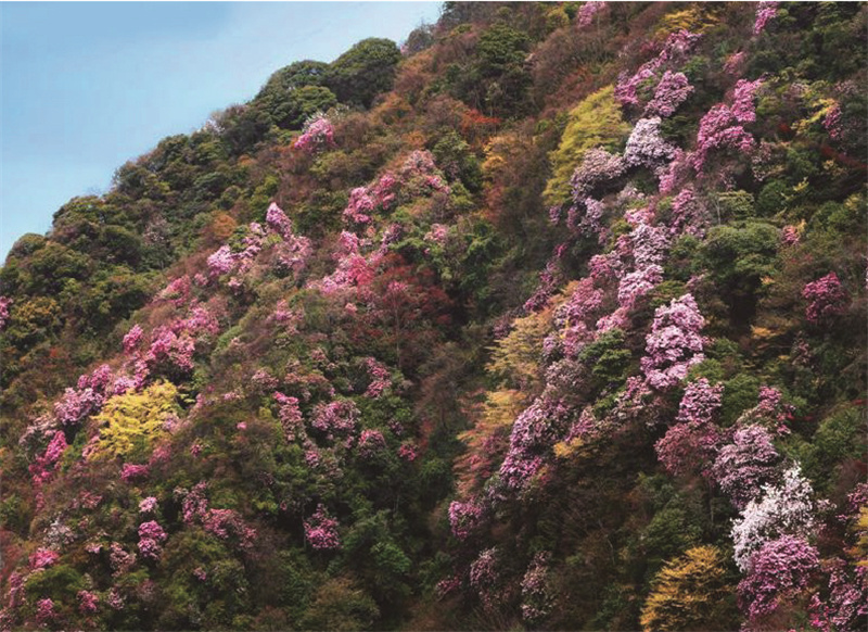 芙蓉江是中國國家風景名勝區,國家4A級景區,大容量峽谷生態景觀。芙蓉江的春天,江水潺潺解凍,兩岸青山漸披綠裝。繁花似錦點綴江畔,樹葉依依隨風搖曳。暖陽輕灑江面,波光粼粼??諝庵袕浡嗤练曳寂c草木清香,一片生機勃勃,宛如人間仙境,醉美了整個春天。