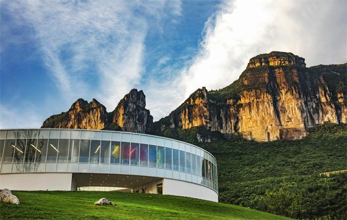 重慶懶壩國際禪境藝術度假區是一處集生活、藝術、信仰于一體的創新型旅游度假地,全年平均氣溫僅15℃,雄偉壯闊的和尚崖連綿三公里,山間常年云霧繚繞,林木青翠,負氧離子充沛,是一處難得的天然氧吧。國際藝術家們以其得天獨厚的地理環境為天然的創作舞臺,與最先鋒的當代藝術碰撞出了迷人的藝術火花。