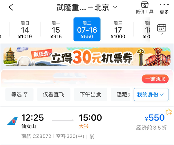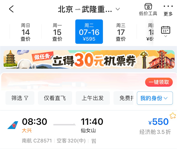 據(jù)了解,該航線由南方航空?qǐng)?zhí)飛,機(jī)型為空客A320。每周計(jì)劃執(zhí)行3班,班期為周二、周四、周六,航班號(hào)為CZ8571和CZ8572。航班CZ8571于 8:30從北京大興國(guó)際機(jī)場(chǎng)起飛,11:40抵達(dá)重慶武隆仙女山機(jī)場(chǎng);航班CZ8572于12:35從重慶武隆仙女山機(jī)場(chǎng)起飛,15:00抵達(dá)北京大興國(guó)際機(jī)場(chǎng)。