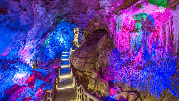 震撼點:“中國最美洞穴”之一!步入這座輝煌的地下水晶宮,巨型石瀑、擎天石筍、珊瑚瑤池等沉積景觀在夢幻燈光下流光溢彩,堪稱“喀斯特洞穴博物館”。