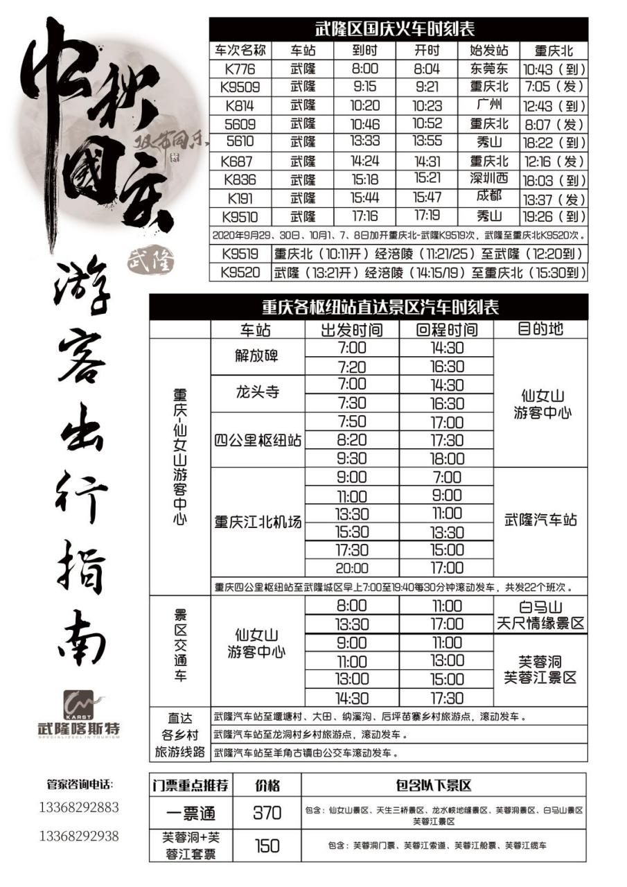 這個國慶不能自駕武隆也不用擔心,重慶各點開通了直達景區及景區之間的交通客運車,一是重慶各點直達仙女鎮游客接待中心車輛原3個班次,現增加為7個班次;重慶江北機場至武隆汽車站共計6個班次;重慶四公里樞紐站至武隆城區原發18個班次增至22班次。