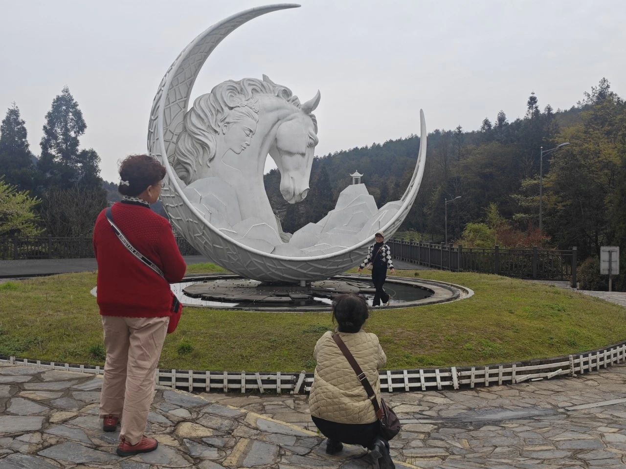 白馬山天尺情緣景區占地 4.15 平方公里,平均海拔 1300 米,年平均氣溫 20℃左右,群山逶迤,云海蒼茫,是集生態、文化、休閑、養生、娛樂體驗為一體的景區。其特色亮點“飛天之吻”以白龍馬與青衣仙女的形象打造,深受游客喜愛。