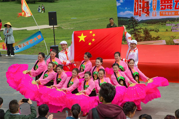 (圖/王俊杰)將舞臺搬到大自然,通過舞姿展現積極向上的生活態度。6月4日,武隆仙女山景區陽光明媚,晴空萬里。以“千年長安·印象武隆”為主題的舞動武隆2021年千人才藝大賽,在仙女山大草原隆重舉辦。來自陜西西安的文藝愛好者,不惜驅車上千里抵達重慶仙女山,開展了一場別開生面的文藝表演大賽。