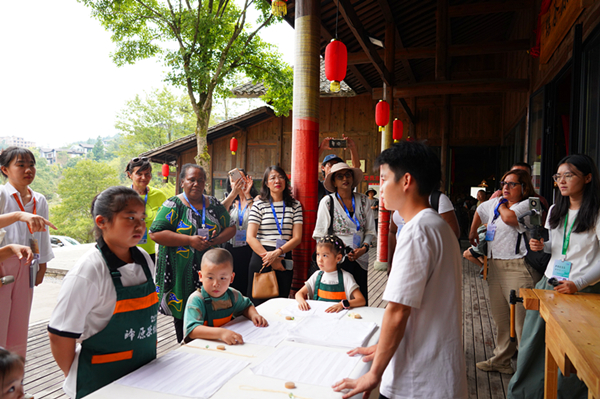 在歸原小鎮(zhèn),傳統(tǒng)文化與現(xiàn)代創(chuàng)意的碰撞融合,讓采風(fēng)組贊嘆不已。非遺文化傳習(xí)所里,游客可以體驗(yàn)蠟染、竹編、豆腐干制作等傳統(tǒng)文化活動(dòng)和非遺項(xiàng)目,零距離感受生態(tài)鄉(xiāng)村特色文化的魅力。