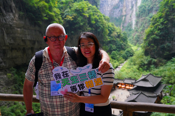 8月28日,2024年“一帶一路”記者組織論壇走進(jìn)重慶武隆進(jìn)行實(shí)地采風(fēng)。來(lái)自德國(guó)、波蘭、捷克、希臘等13個(gè)境外國(guó)家和地區(qū)的22位記者組織負(fù)責(zé)人與媒體記者,以及新華社、環(huán)球時(shí)報(bào)、中國(guó)新聞出版廣電報(bào)和重慶市級(jí)媒體等一同來(lái)到仙女山馬球俱樂(lè)部、天生三橋景區(qū)、仙女山街道歸原小鎮(zhèn)等地,實(shí)地了解世界自然遺產(chǎn)地武隆的非凡魅力。參觀游覽后,外媒記者被武隆的風(fēng)光所征服,現(xiàn)學(xué)重慶話表白武?。鹤匀伙L(fēng)光,霸道慘了!