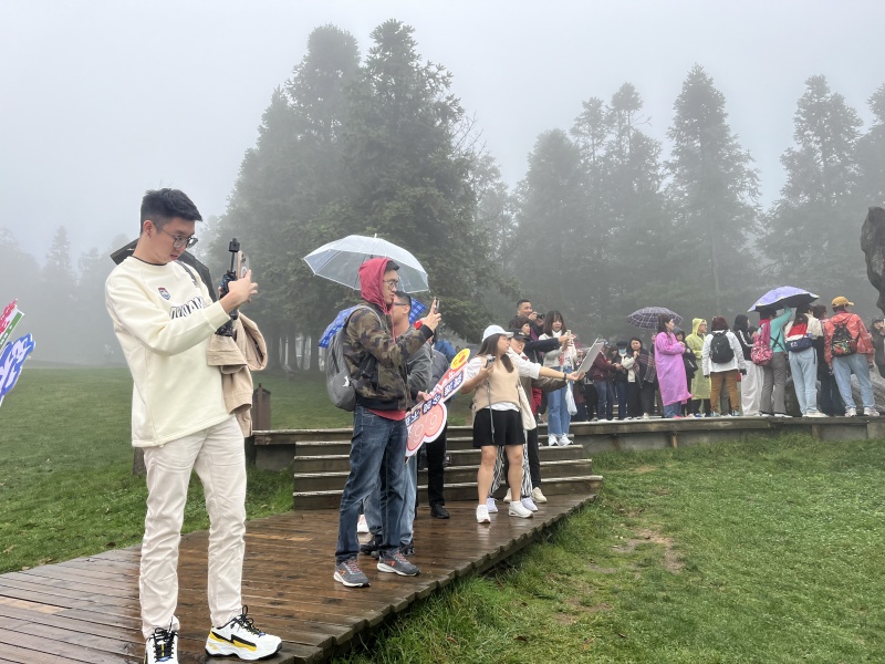 上午,旅游團眾人游覽了有“東方瑞士”之譽的仙女山國家森林公園。當時秋雨淅淅瀝瀝,云霧翻騰涌動,在這樣的天氣映襯下,仙女山愈發顯得秀麗迷人。游客們走進云霧里,就好像踏入了仙境一般,不停地拍照打卡,想要用鏡頭定格眼前的美景。“網紅波浪公路、大草原、仙女山林海……,仙女山的每個景點都是值得來一千次的地方。其風光獨特、功能配套可與國際一流景區媲美,身臨其間,將會給人心靈的安頓。”自媒體博主王先生發出這樣的贊嘆。