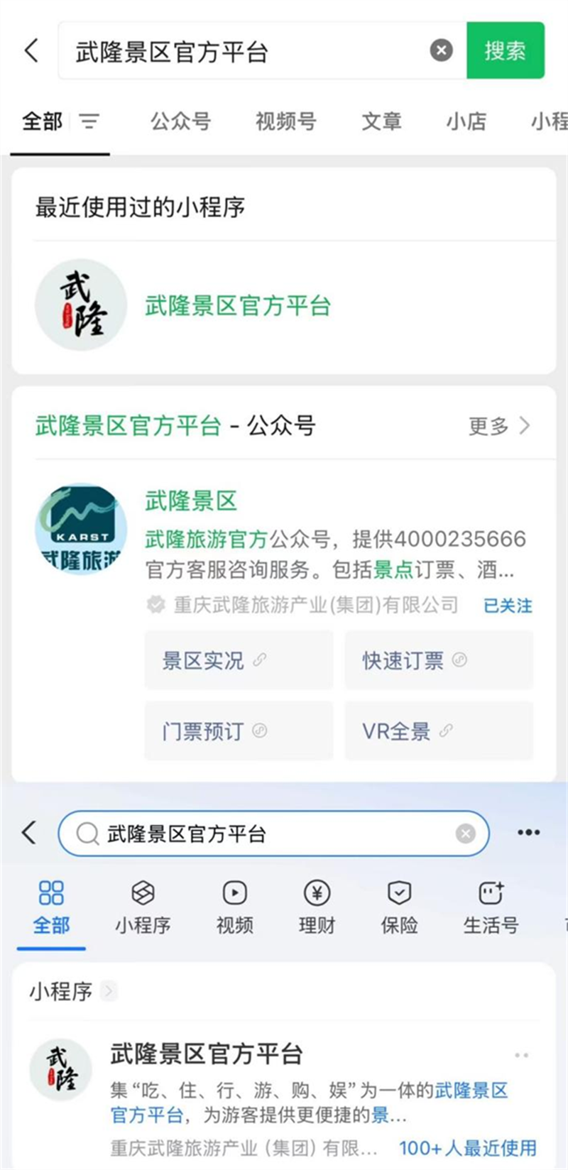 有需求的游客可直接掃描圖片二維碼購票,或通過微信或支付寶搜索“武隆景區官方平臺”小程序購票,也可到武隆景區售票窗口,實名購票。請注意,購票須知、入園方式以景區官方平臺、售票窗口解釋為準。