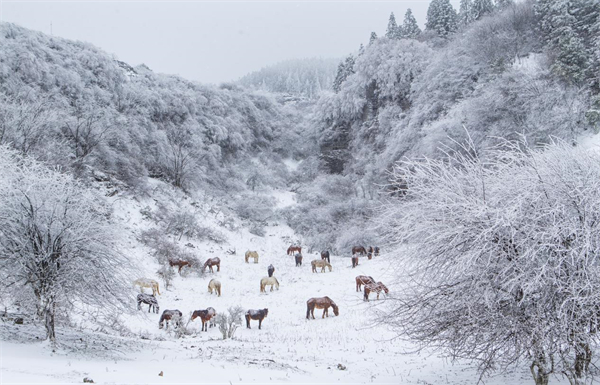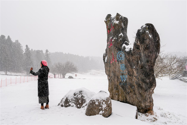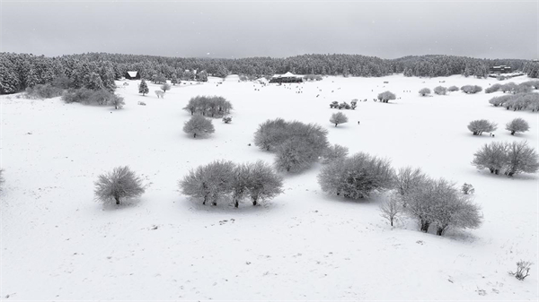 上天似乎格外喜愛仙女山,當別處還在暖陽下欣賞姹紫嫣紅的百花時,仙女山卻一秒穿回冰雪童話世界。3月17日,武隆仙女山迎來降溫降雪天氣,漫天飛舞的雪花紛紛落下,給連綿的山巒、廣袤的草原、茂密的森林都披上了潔白的盛裝。目前降雪仍在持續,喜歡賞雪的朋友千萬不要錯過這別致的春日浪漫喲!