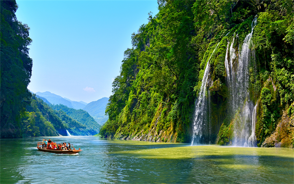 若說仙女山是陸上的春日狂想,芙蓉江則是水寫的靈動詩行。乘纜車俯瞰芙蓉江碧玉江水,兩岸青翠欲滴,在烏江的柔波里,藏著你對春天的所有想象。或乘坐游船,感受江風拂面、山水入懷,賞苗寨風情、古木竹海、龍孔飛瀑、鐘乳垂掛著名景點,來一場芙蓉江畔的寧靜之旅。