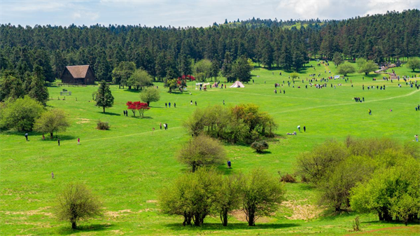 春日的仙女山,褪去冬日的銀裝,化身一片廣袤的綠色海洋。牛羊馬悠閑漫步,清新的空氣沁人心脾。在草原上放風箏、與小羊親密互動;或是乘坐復古小火車,欣賞沿途的美景;還能徒步波浪公路,以青山、草原與小火車為背景拍照打卡,定格快樂時光。
