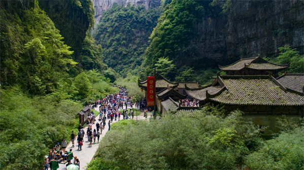• 下午:游覽龍水峽地縫,沿著陡峭的石階深入地下,穿梭在狹窄的峽谷間,看壁立千仞,聽(tīng)地下暗河奔涌,邂逅銀河飛瀑的壯美。